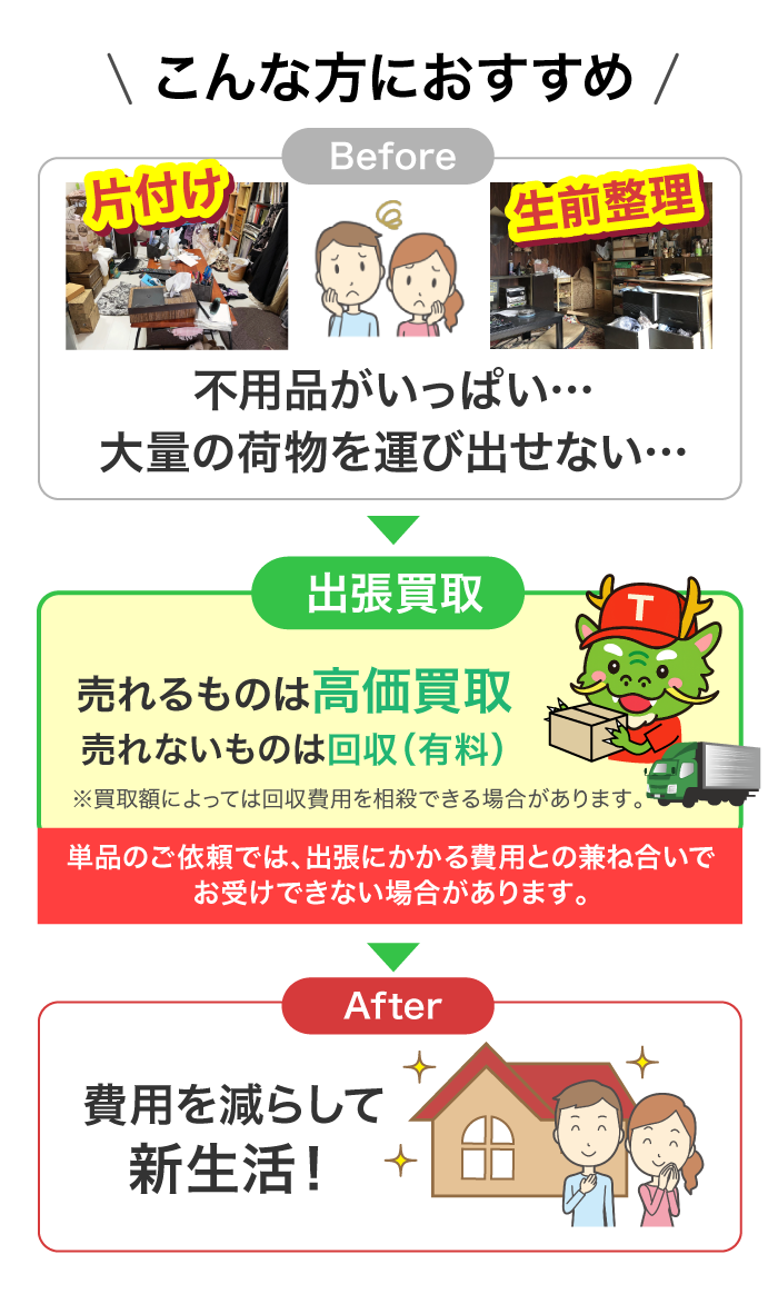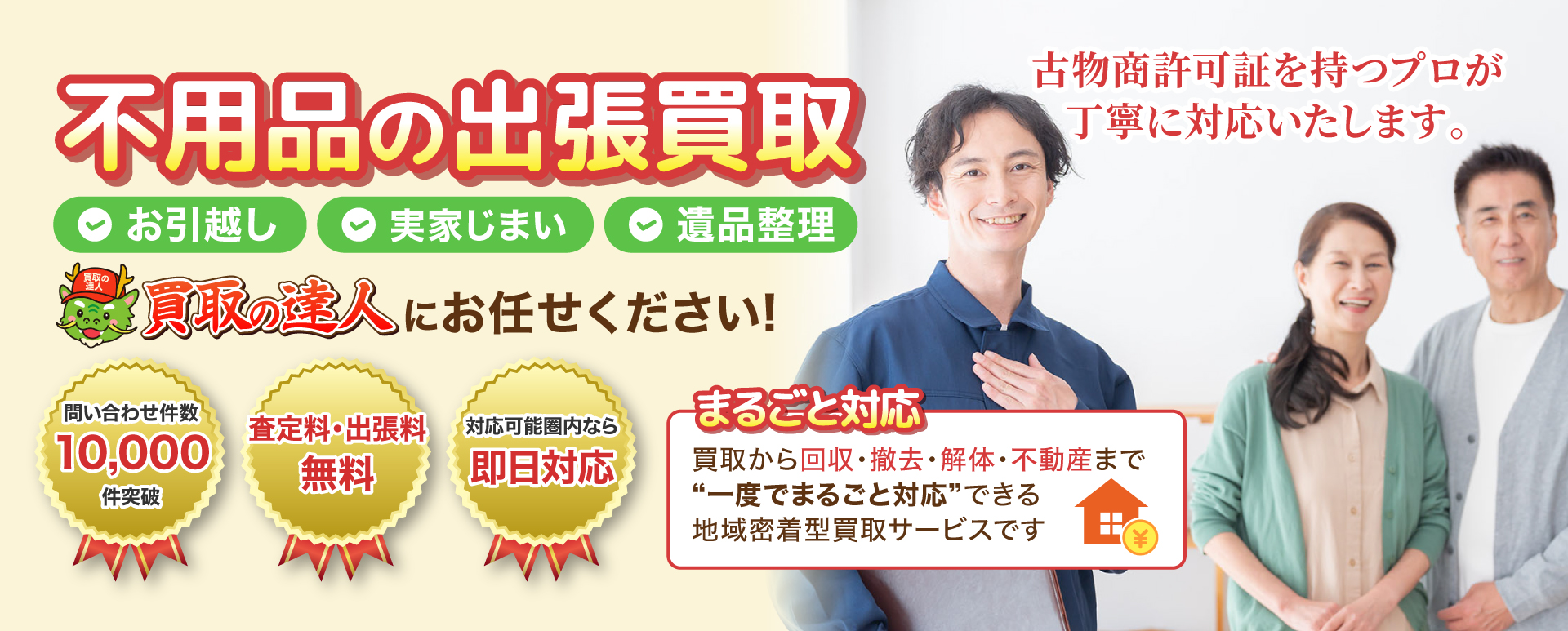 地域密着型の出張買取サービスとして、地元の皆さまから長年ご利用いただいております。
