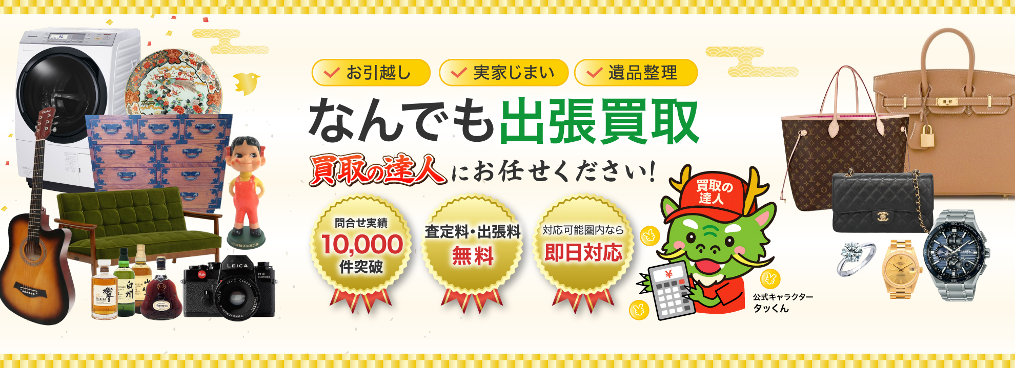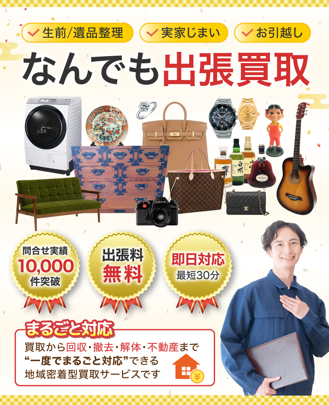 地域密着型の出張買取サービスとして、地元の皆さまから長年ご利用いただいております。