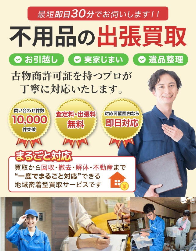 地域密着型の出張買取サービスとして、地元の皆さまから長年ご利用いただいております。